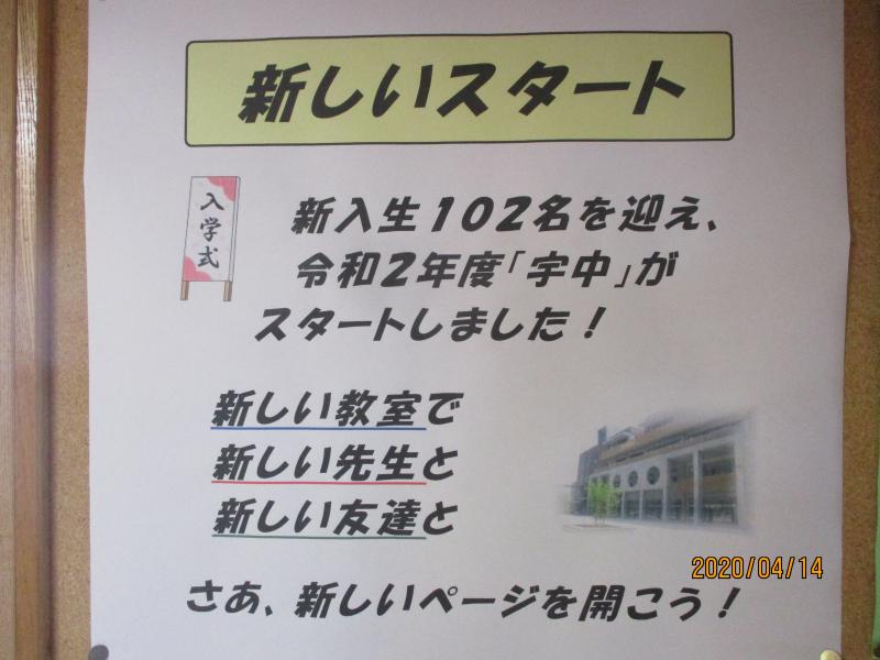 4月7日(火)、令和2年度 宇ノ気中学校 入学式を行いました。様々な不安の中、新型コロナウイルス対策を取りながら、新入生102名を新たに迎えることができました。