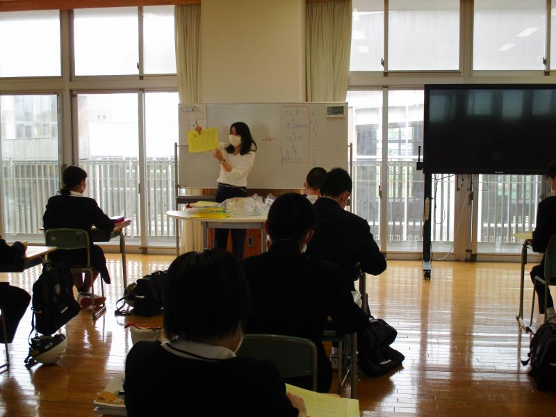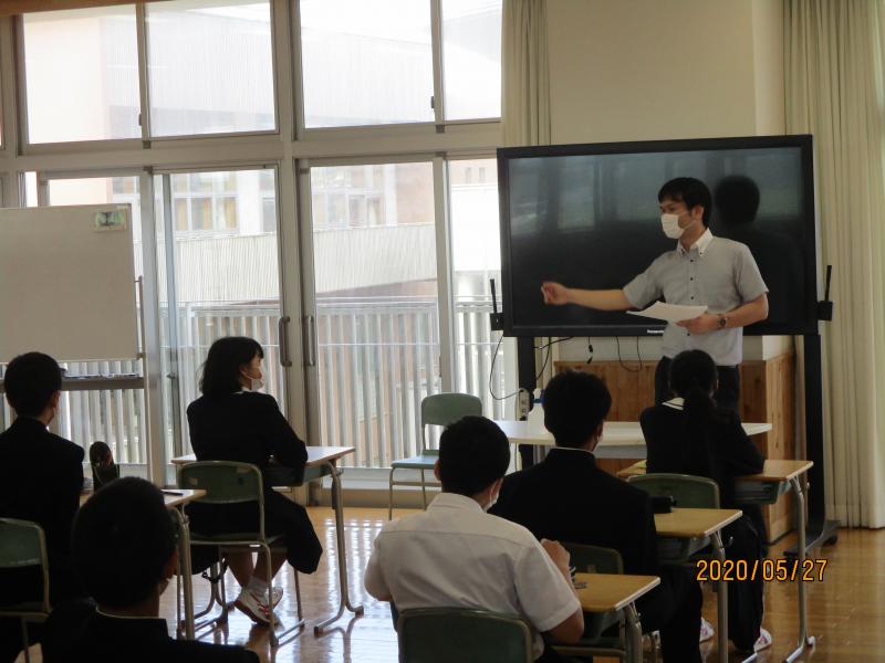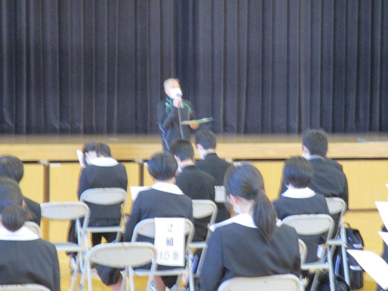今日は1年生の学年登校日でした。先週とは内容も違い、今週は教科書などを使って、30分間という短い時間で授業・ガイダンスを行います。