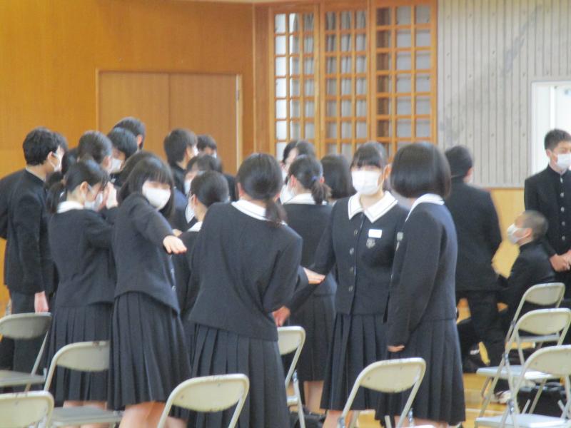 「3年生!ソーシャル・ディスタンスですよ!」と言っても、久しぶりの再会に、やっぱり友達どうしで話をしたいんだよね!でも、短時間だけですよ!