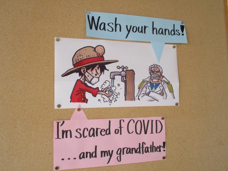 様々な新型コロナウイルス感染防止に努めます。手洗いを進んでしましょう。