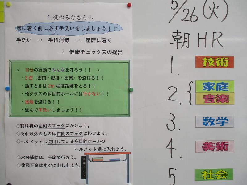 3年生も元気よく登校してくれました。3年生の中には、3月の臨時休業に入る前の様子と比べると、ビックリするほど体格的に大きくなったなぁと思う生徒がいました。2~3ヶ月の成長スピードの速さに驚かされました。
