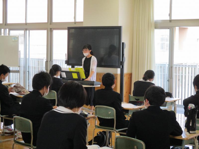 1年生はまだまだ中学校の授業に慣れていないためか、緊張感のある表情、まだまだぎこちない雰囲気でした。それでも、挙手発言をがんばる生徒が見られました。体育の授業では、まるでストレスを発散するかのように思い切りボールを打っていましたね。