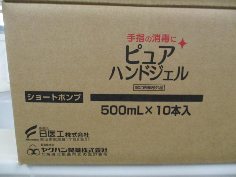 今日、富山県の医薬品メーカー「日医工株式会社」さんから手指消毒のためにと「ハンドジェル」をたくさん寄付していただきました。