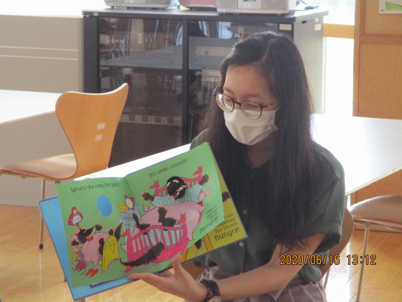 今日の昼休み、サリナ先生による英語絵本の読み聞かせがありました。サリナ先生による読み聞かせは毎週火曜日と木曜日に行います。