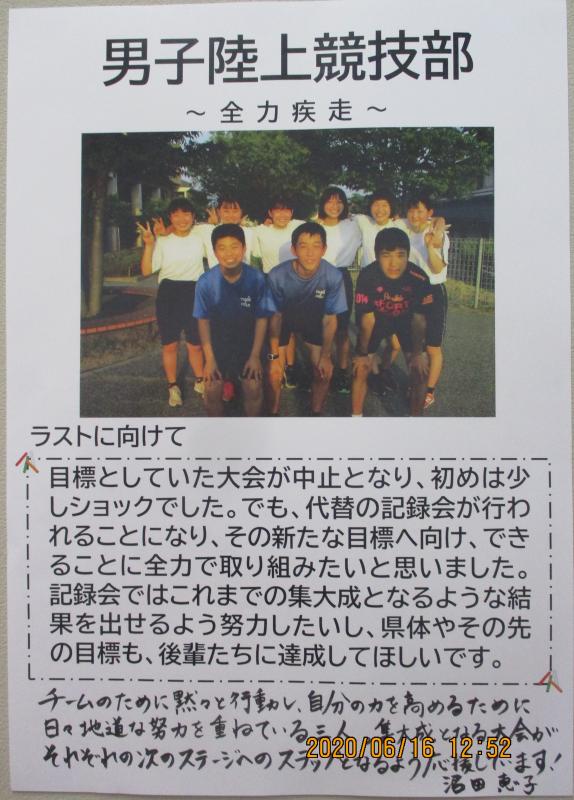 ここで、7月に行われる交流試合、代替大会に向けた各部のキャプテンからの目標や意気込みを紹介します。