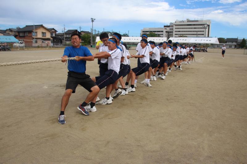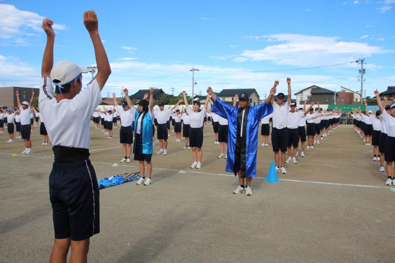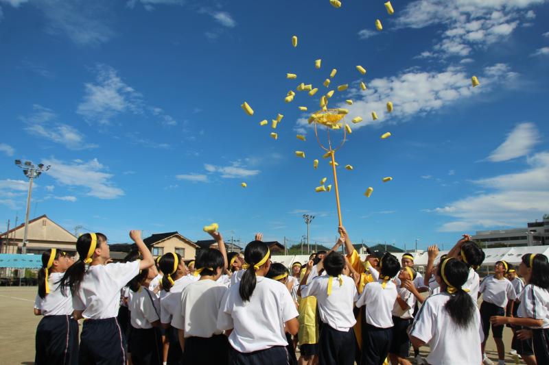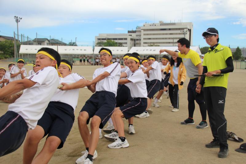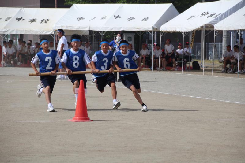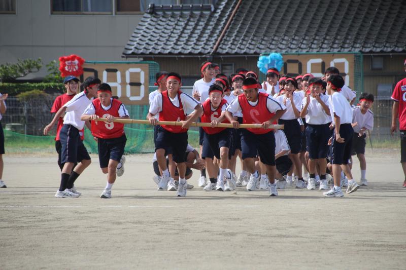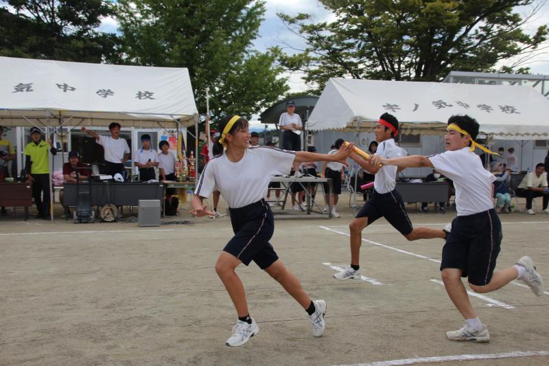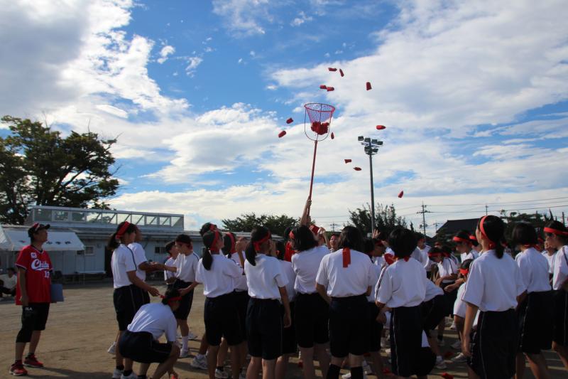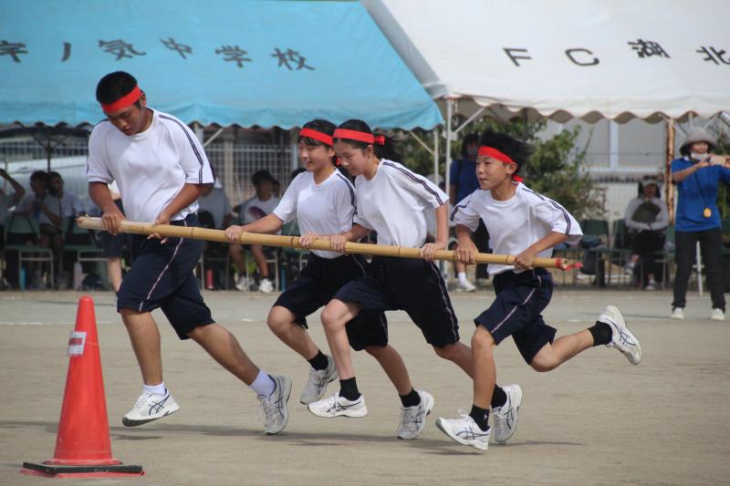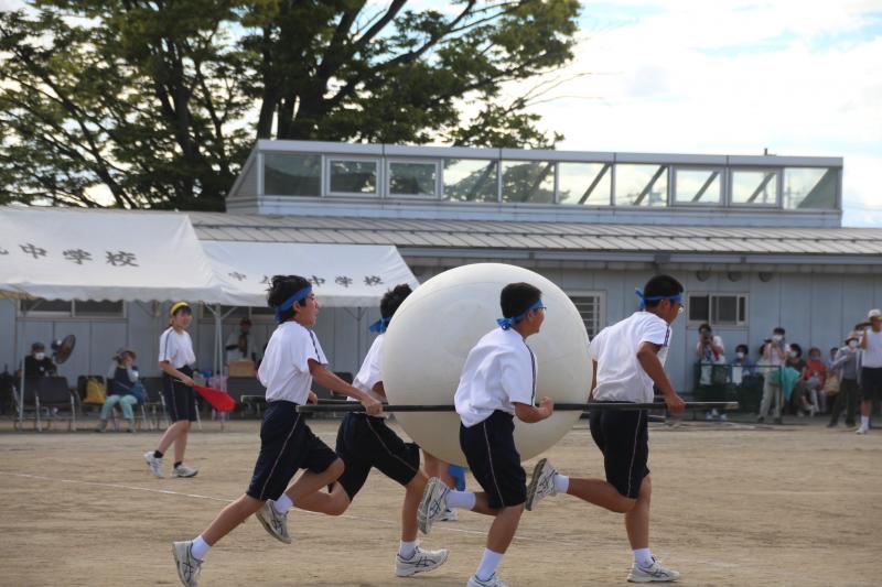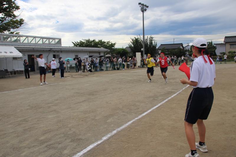 9月3日(木)に運動会を行いました。今年度は午前中のみで実施しました。熱中症なども心配されましたが、生徒たちは元気に、持てるパワー、エネルギーを発散させていました。どの生徒も楽しそうに競技に取り組んでいました。特に、最後の団対抗リレーは大接戦となり、大いに盛り上がりました。