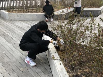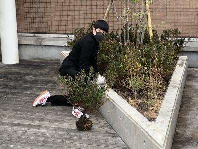 4月16日(金)16時から完成式を行い、生徒会役員で、花壇に花を植え、今後も委員会が中心となって、この花壇のお世話をしていきます。