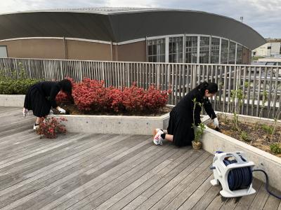 宇ノ気中同窓会の協力で、3ヶ月をかけた屋上花壇の整備が完了しました。