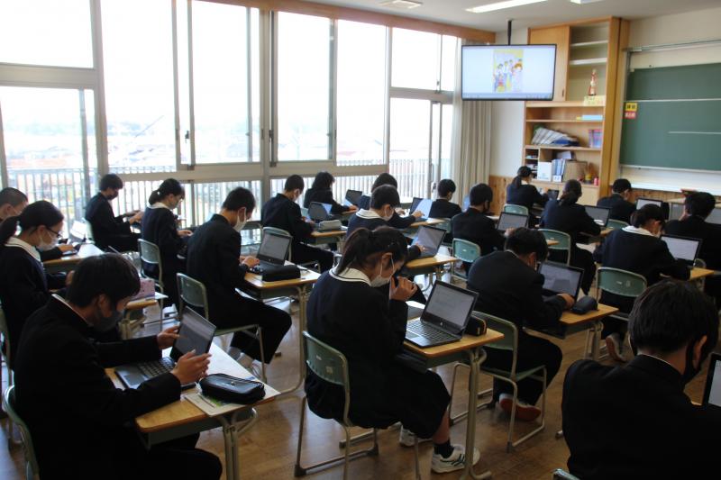 chromebookを活用して意見を交流しているクラスもありました。仲間との議論を通じて、自分自身と向き合うことができました。