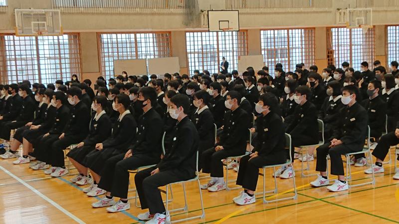 「かほく市のまちづくり」と題して『海と緑に抱かれたにぎわいのまち』の実現に向け、かほく市が行っている取組などについて授業を3年生に行っていただきました。