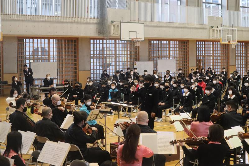 オーケストラアンサンブル金沢の皆さんの演奏によるオーケストラ鑑賞教室が行われました。