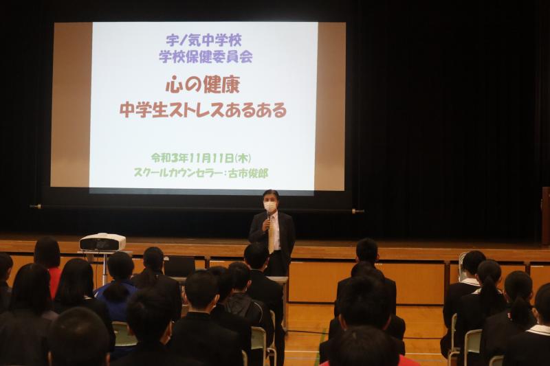 「心の健康 中学生ストレスあるある」のテーマで古市スクールカウンセラーから講話とエンカウンターを行っていただきました。