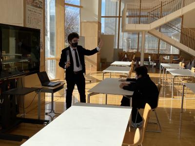 新しく赴任してきたALTセバスチャンによる英語絵本の読み聞かせをランチルームで行われました。たくさんの生徒が読み聞かせを聞きに来ていました。