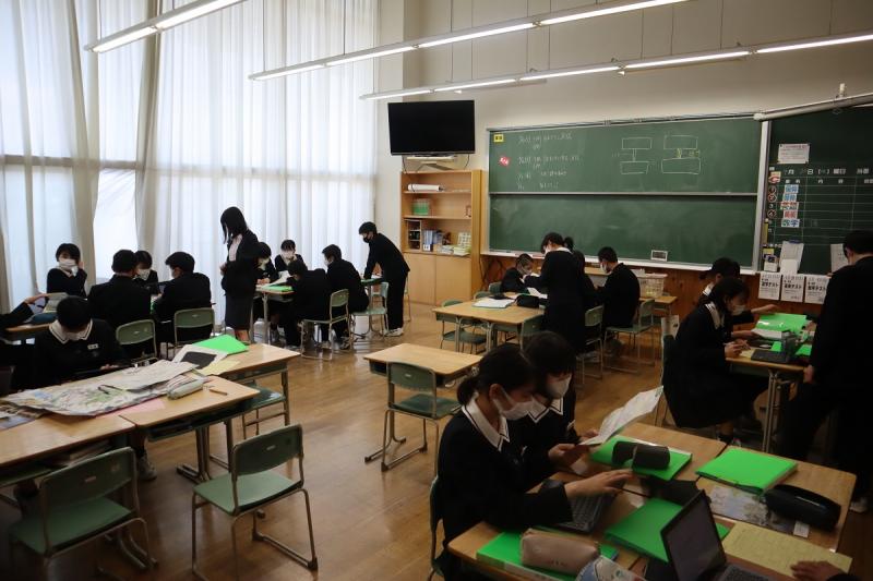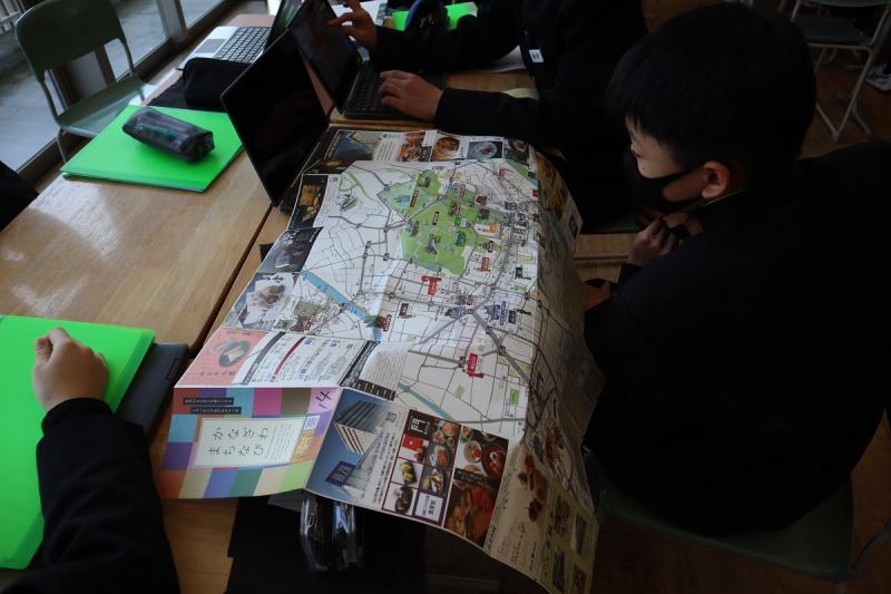 本日の5,6時限目に、2年生は校外学習(金沢班別自主プラン)の行程を決めました。生徒それぞれの机にはクロムブックが開かれており、金沢市の観光ガイドブックを片手に、生徒全員が楽しそうに行程表を作成していました。当日がとても楽しみですね!