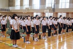 本日で1学期は終了です。学校では、放送による表彰伝達と激励会、終業式が行われました。その後は、各学年の多目的ホールで学年集会が行われました。長い夏休み、健康に留意して、それぞれ有意義に過ごしてほしいものです。なお、来週は通知表渡し(3年生は3者面談)が行われます。