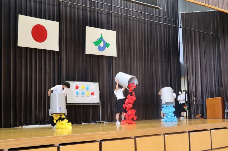 6限目に運動会の各団ごとに集まって顔合わせが行われました。応援団長をはじめとした応援団員の自己紹介や団長の決意表明などが行われました。どの団も優勝目指して頑張りましょう。
