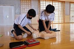 7月11日(月)と13日(水)にかほく市消防本部の方をお招きし、救命講習を2年生で行いました。心肺蘇生法などを実際に行いました。