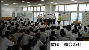 6限目に運動会の各団ごとに集まって顔合わせが行われました。応援団長をはじめとした応援団員の自己紹介や団長の決意表明などが行われました。どの団も優勝目指して頑張りましょう。