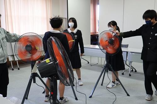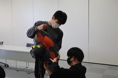 今日は、その送風機をJRC委員の3年生が組み立ててくれました。
