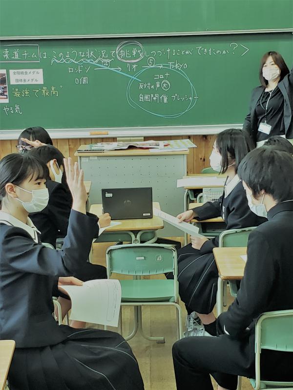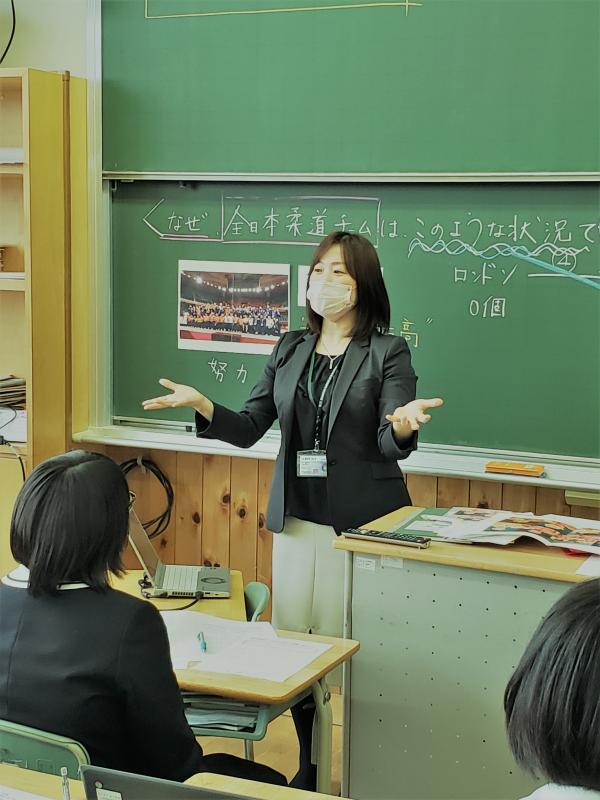 本日(11/21)、前回に引き続き、金沢工業大学の平真由子先生をお招きして、「特別の教科 道徳」の授業を2年2組・3組にて行いました。平先生のテンポの良い問いかけに、生徒たちはたくさんの素敵な意見を発表してくれました。授業が終わった後に、何名かの生徒に感想を聞いたところ、「やっぱり挑戦することって大切なことなんだなと思いました。」「今日の授業では、自分の考えをしっかり表現することができました。また、友達の意見もしっかり聞いて考えることができたと思います。とっても楽しかったです。」という感想を述べてくれました。普段はなかなか意見を言うことができない生徒も、今日は2組・3組すべての生徒が、それぞれ感じたことを自分の言葉で表現してくれていたと思います。