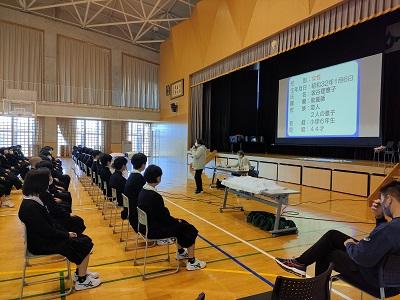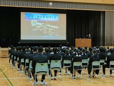 本日は3年生を対象にかほく市の市長より特別授業が行われました。