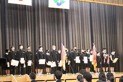 剣道部や駅伝メンバーなど、多くの生徒が表彰されました。