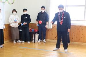 ↑「ボッチャ」は自作のボールで行いました。卒業生の前畑さんは「ボッチャが楽しかった」と話してくれました。