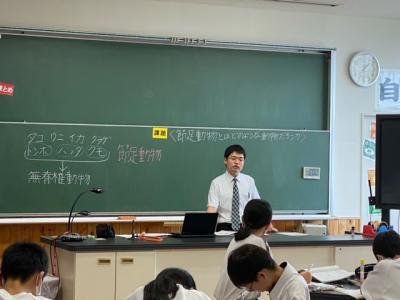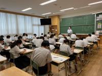 5日より教育実習生として本校に来られた後藤先生の研究授業が1年2組で実施されました。1週目の授業では、なかなか50分間の中でまとめまでいくことは難しいと話していましたが、本日の授業は計画通り進めることができました。生徒からも多くの意見が出ていました。お疲れ様でした。