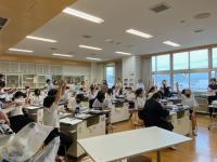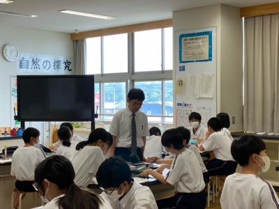午後からは、かほく市の理科部会の先生方の研修が、2年1組の授業で行われました。挙手発言をする生徒が多く、他校の先生方は感心していました。