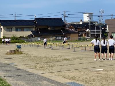 3年生の体育の時間は、「ハードル走」の記録会を行いました。以前に比べると一人一人のハードリングはスムーズになっていましたが、50m走の記録と比較をすると「プラス2秒かかった~」や「この前のタイムの方が良かった」などの声が聞こえました。次の陸上競技は「高跳び」の授業になります。