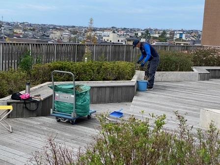 本校の屋上広場にある花壇や玄関先のプランター、そして学校周りの木の手入れなど、本当に大変な仕事の一つです。