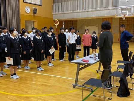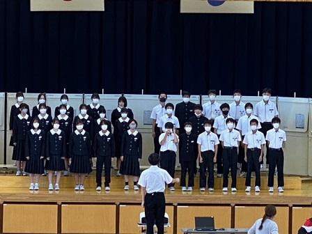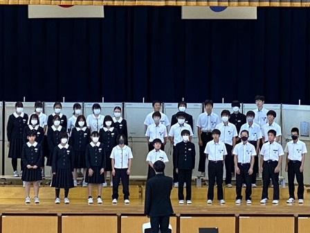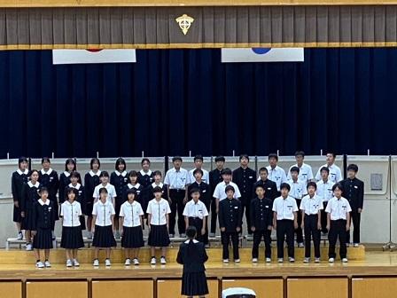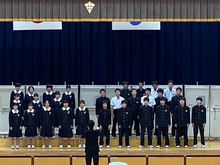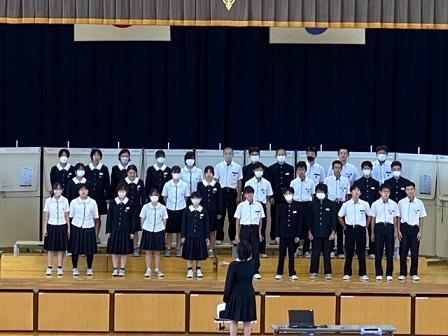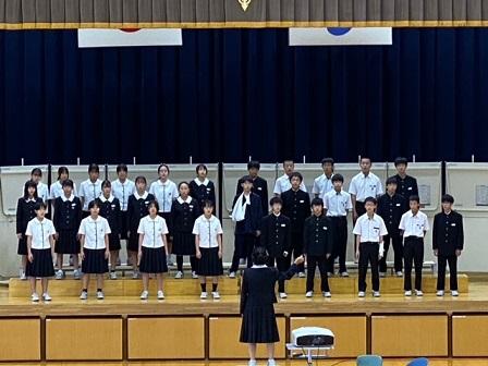 1年生、どの学級も声が出ており音程がとれてきましたね。そしてどの学級もまとまりができてきました。言葉をはっきりとそして強弱などを工夫することができればよいなと感じました。本番が楽しみです。