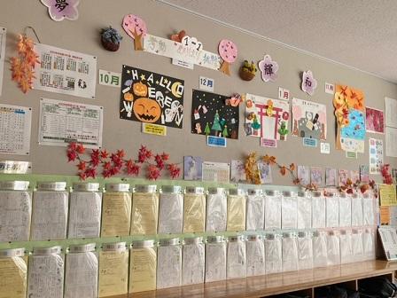 学級や廊下の掲示板は、秋の風情を味わうことができる掲示物でにぎわっています!