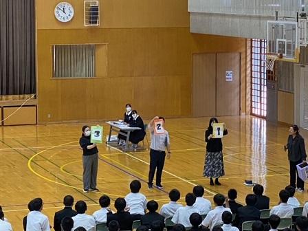 本日、2年生による合唱リハーサルが行われました。最初に全体合唱を行ったあと、歌う順番の抽選が行われました。