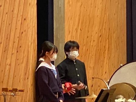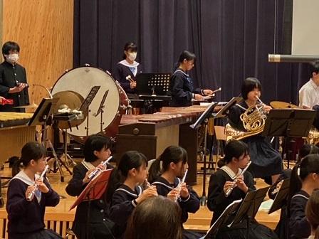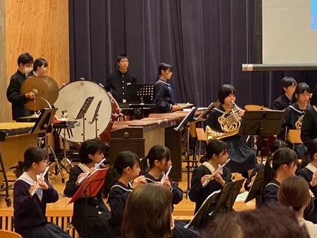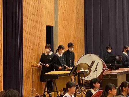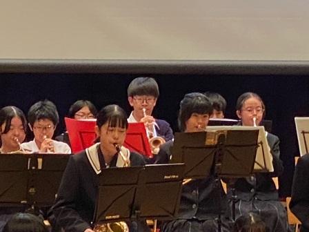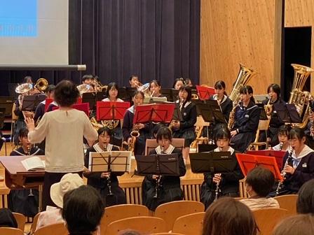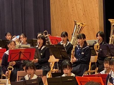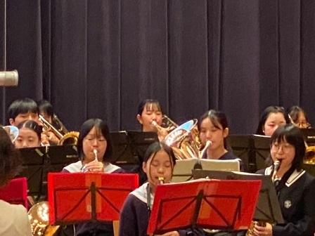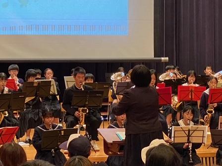 小学校の発表では、「和太鼓」や「器楽合奏」などそれぞれの学校による発表がありました。中学校では、3校の吹奏楽部が合同で出演し、「楽器紹介のためのファンタジーメドレー」、Mrs.GREEN APPLEの「青と夏」、YOASOBIの「アイドル」を演奏しました。合同練習を1回しただけと聞いていましたが、息の合った演奏で、生徒達は大変楽しそうでした。また会場には多くの保護者や地域の方が来場され、「音楽の秋」を堪能していました。