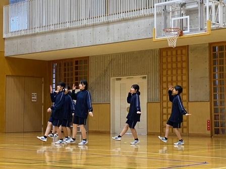 本日1年生の保健体育の授業では「ダンス」の発表会を行いました。中学校のダンスの授業では、小学校の学習を受けて、友達と踊ることの楽しさや喜びを味わい、選んだ曲のイメージを捉えて表現することなどが目標となっています。