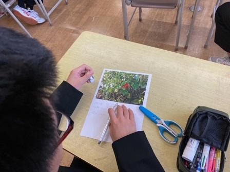 2年生の美術の授業では、完成した「学校の妖怪」について「作品カード」を作成しました。自分の作った妖怪の性格や特徴などをわかりやすく、色をつけて作成しました。次の時間は、作成したカードをお互いに鑑賞する予定です。