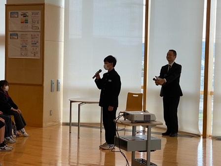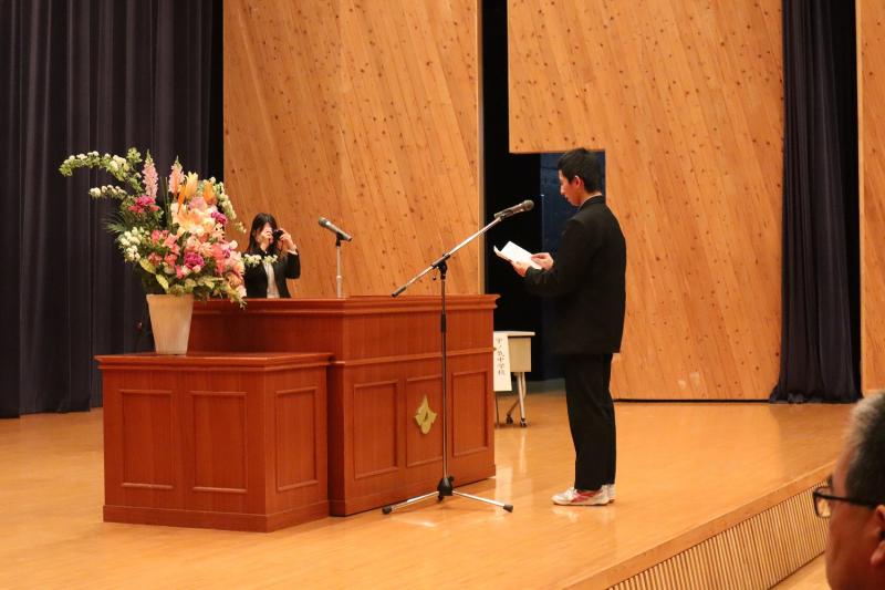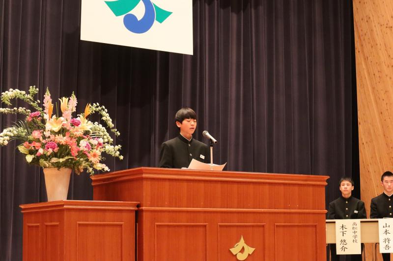 生徒代表として、野上春汰さんが「僕の目標」と題して、自分自身に貢献できる人に、そして他者に貢献できる人になりたいと発表しました。誓いの言葉を紺谷到良さんが「まわりを見て、自分から行動できる人になりたい」と決意を新たにしました。