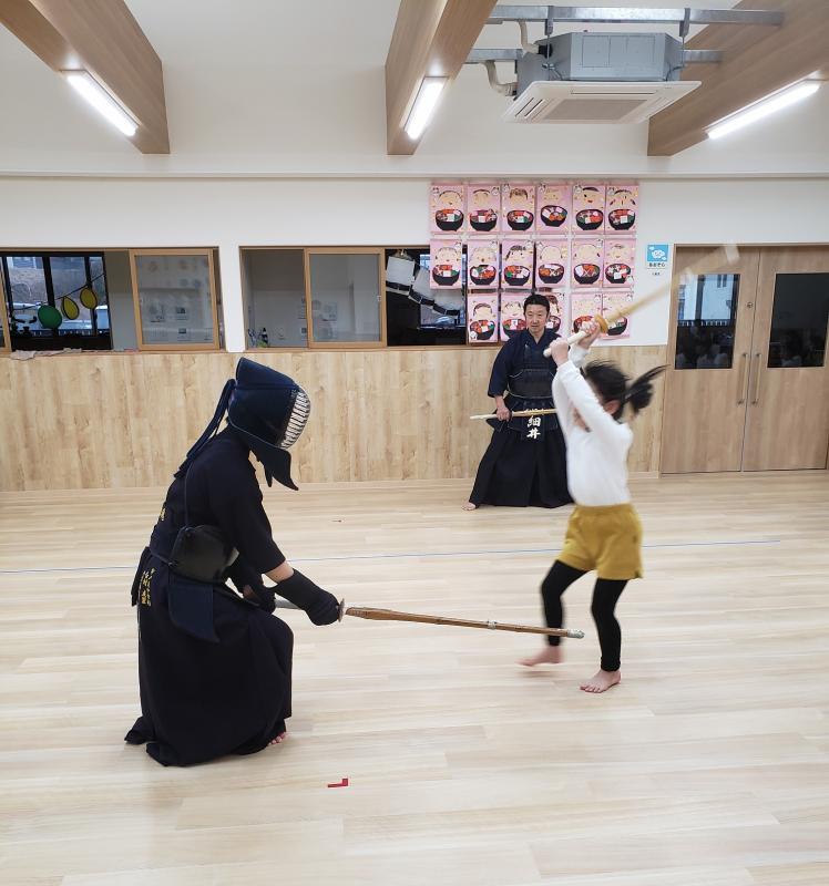 にじの丘こども園では、理事長である細井さんが、自ら剣道を園児に教える時間を設けていて、今日は発表会でした。「あおぞら組」の子どもたちは、寒さも吹き飛ばす元気いっぱいの掛け声で、これまでの練習の成果を保護者のみなさんの前で披露できました。