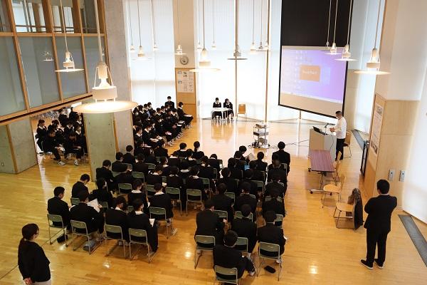 本日の放課後に、後期最後の生徒議会が行われました。最初に生徒会副会長から後期の取り組みについて、「後期の活動の中では特に学校祭の成功に向けて、生徒全員で準備できたことがよかった。その中でもオープニングが盛り上がって良かった」とありました。また各委員長そして各学年より、後期の取組そしてそれらについての反省など発表がありました。