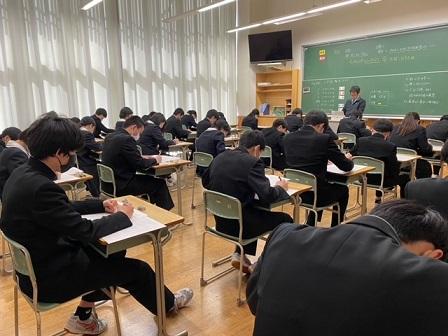 本日、3年生の期末テストが行われました。本日のテストで中学校での定期テストは終了です。生徒は、しっかりとした態度で真剣に問題と向き合っていました。来月の今日は、公立入試が終わりスッキリとした状態で卒業式の練習をしていることと思います。一人一人体調管理の徹底のために、こまめな手洗いやうがいをして、保健委員の皆さんは教室の換気をお願いします。