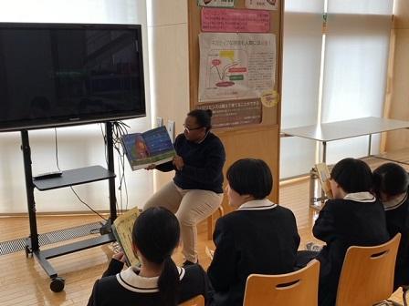 今朝は、かほく市図書ボランティアやまんばさんの鈴木さんと本校の図書館司書の向さんによる読み聞かせが行われました。本日の本は、「桃源郷ものがたり」と「はなとひみつ」です。桃源郷ものがたりは、美しい絵が描かれた絵本であり、はなとひみつは料理家の平野レミさんの旦那様の和田誠さんが描いたとても可愛いイラストの絵本です。