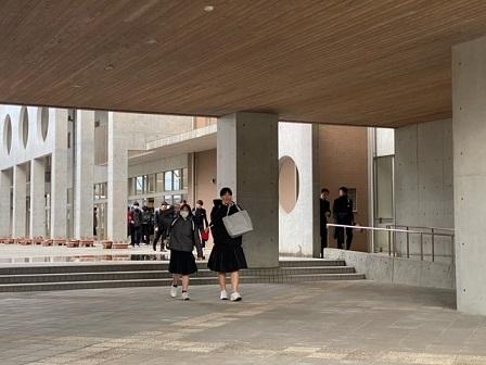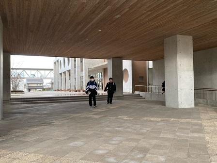 能登半島地震による校舎まわりの修復工事が本日から始まりました。まずは、新化館側のピロティーの部分と学校の校訓「公正・自主・敬愛」が刻まれた石碑の工事から始まりました。卒業式までになんとか完成する予定ですが、ピロティーの部分は、一枚一枚剥がして、中の土の部分をならしながら作業を進めており、時間がかかるだろなと思います。寒い中ですが、業者の皆さんよろしくお願いします。