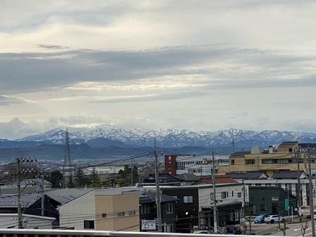 本校のウッドデッキから見える白山連峰は毎日違った表情を見せてくれます。先週、放射冷却の寒い朝の白山は、鮮やかな表情を見せてくれました。(*写真上、放射冷却の日は一番オススメです)今朝の白山は、週末の気温が高かったせいか、まだ2月なのに地面が多く見える状態でした。(*写真下)