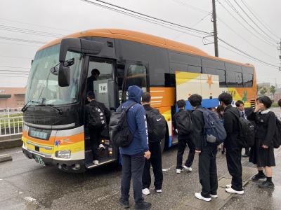 本日より3日間の予定で関西方面へ修学旅行を実施します。5時45分集合でしたが、生徒は元気、笑顔いっぱいです。