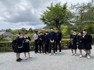 京都は最高気温が18度、寒くもなく暑くもなく快適な一日でした。市内はどこも混雑はなく、ほぼ計画通りに見学地を回ることができました。このあと、宿泊先の神戸に向かいます。生徒は元気いっぱいです。