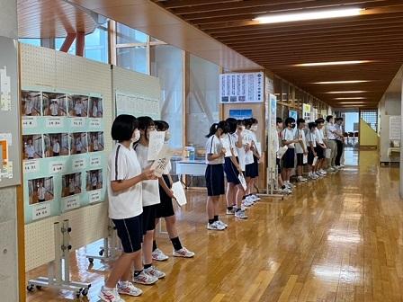 本日の朝、後期生徒会選挙に向けて、立候補者が生徒に呼びかけを行っていました。選挙は来週27日(金)です。立候補者の理由や抱負には「健康の取り組みだけでなく、笑顔が増える活動を企画したい」「おはようだけでなく、ありがとう!という心を豊かにする言葉やあいさつにも目を向けたい」など頼もしい内容がいくつもありました。