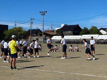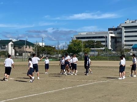 教育実習生の西田先生の研究授業が2年1組で行われました。バスケットボールの単元で、本日の授業はいろいろなパスを使えるようにするためには?という課題でした。先週は緊張した様子が見られましたが、今日の授業では、生徒の表情を見ながら大きな声が出ており、いいプレイには「○○○なところがよくなったよ」など褒め・認めの声も出ていました。残り、2日となりましたが、充実した実習になりますように。