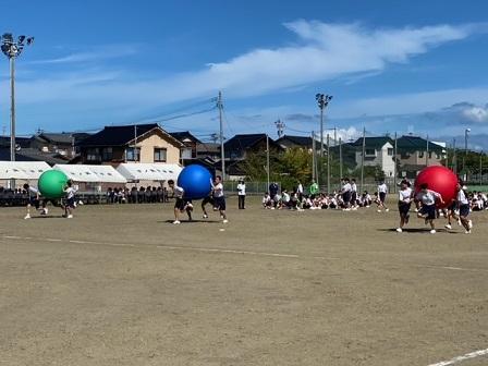 さわやかな秋晴れの下、運動会が行われました。総合優勝の青団はほとんどの種目で1位を獲得し、圧勝でした。