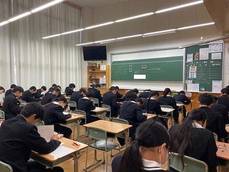 本日、第3回統一テストが行われました。風邪症状やインフルエンザ等で欠席している生徒はいますが、広がっている状況はありません。3年生は緊張感を持って取り組んでいました。また、2年生は石川県評価問題テスト(国数理)が実施されました。それぞれの学年では、来年度の進学・進級に向けて、準備が進められています。